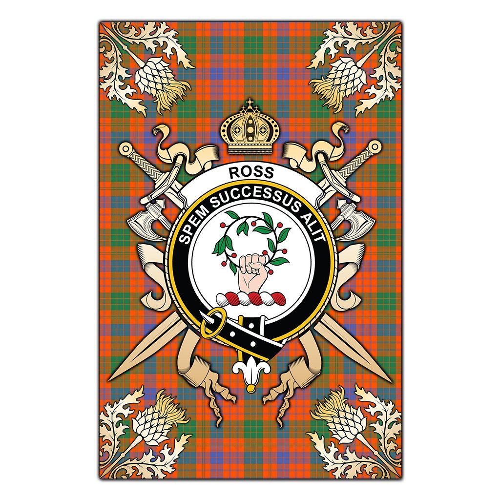 Ross Ancient Tartan Crest Black Garden Flag - Gold Thistle Style