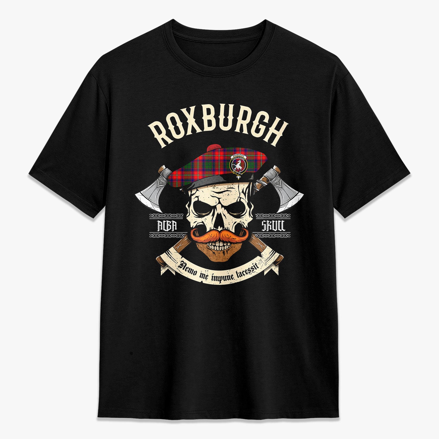 Roxburgh District Tartan Crest 2D T-shirt - Alba Skull Style,