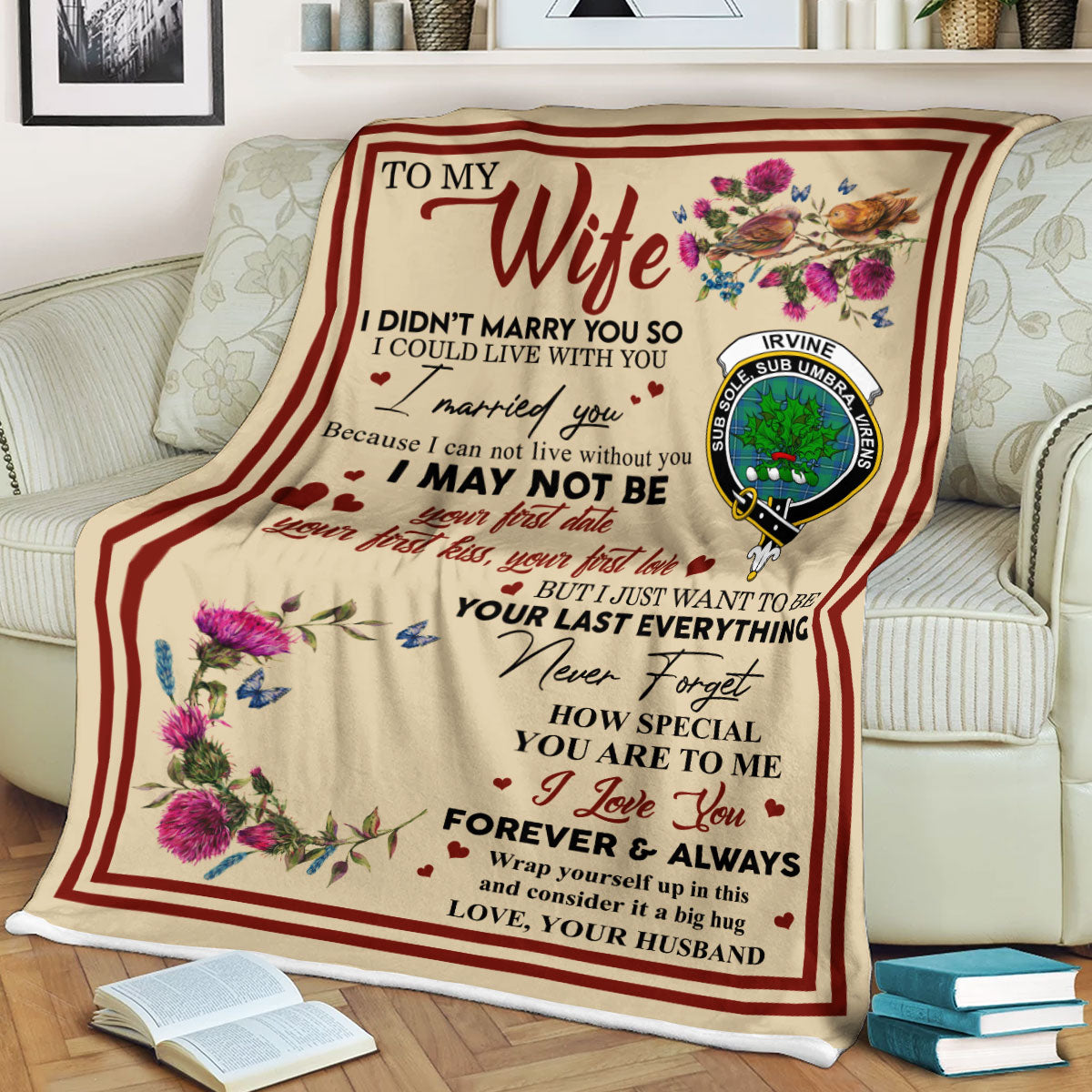 Scots Print Blanket - Irvine Tartan Crest Blanket To My Wife Style, Gift From Scottish Husband