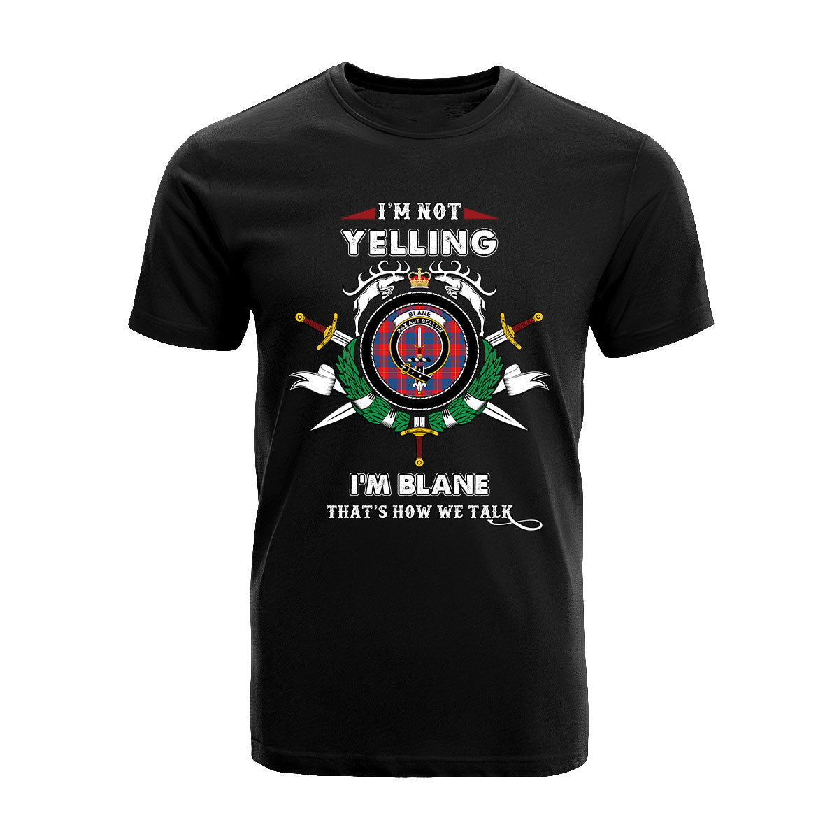 Blane Tartan Crest T-shirt - I'm not yelling style