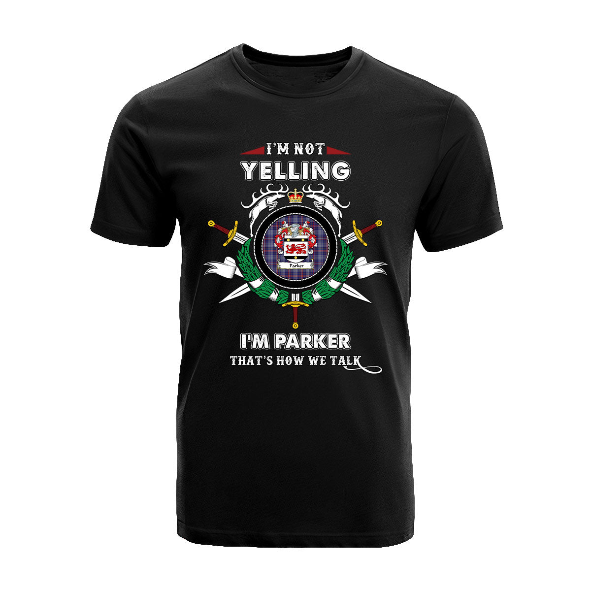 Parker Tartan Crest T-shirt - I'm not yelling style