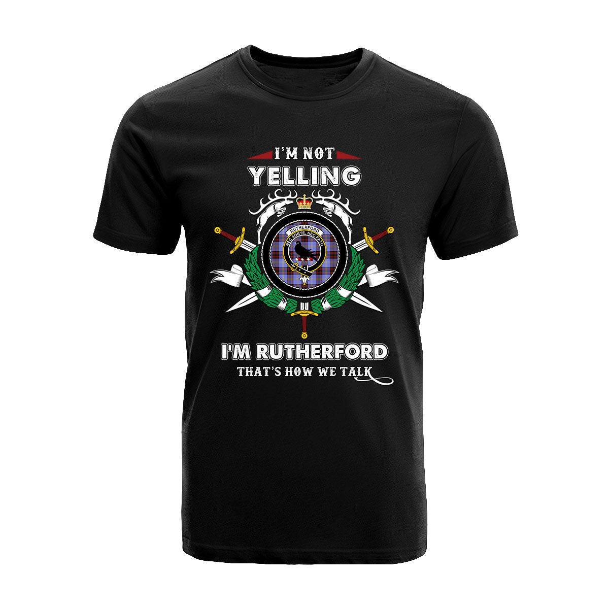 Rutherford Tartan Crest T-shirt - I'm not yelling style