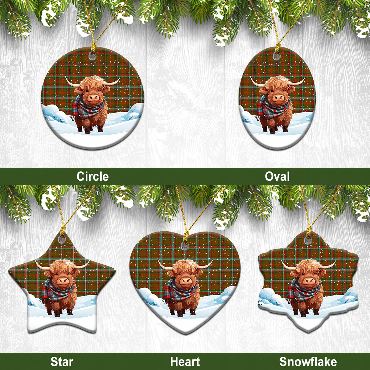 Scott Brown Modern Tartan Christmas Ceramic Ornament - Highland Cows Snow Style