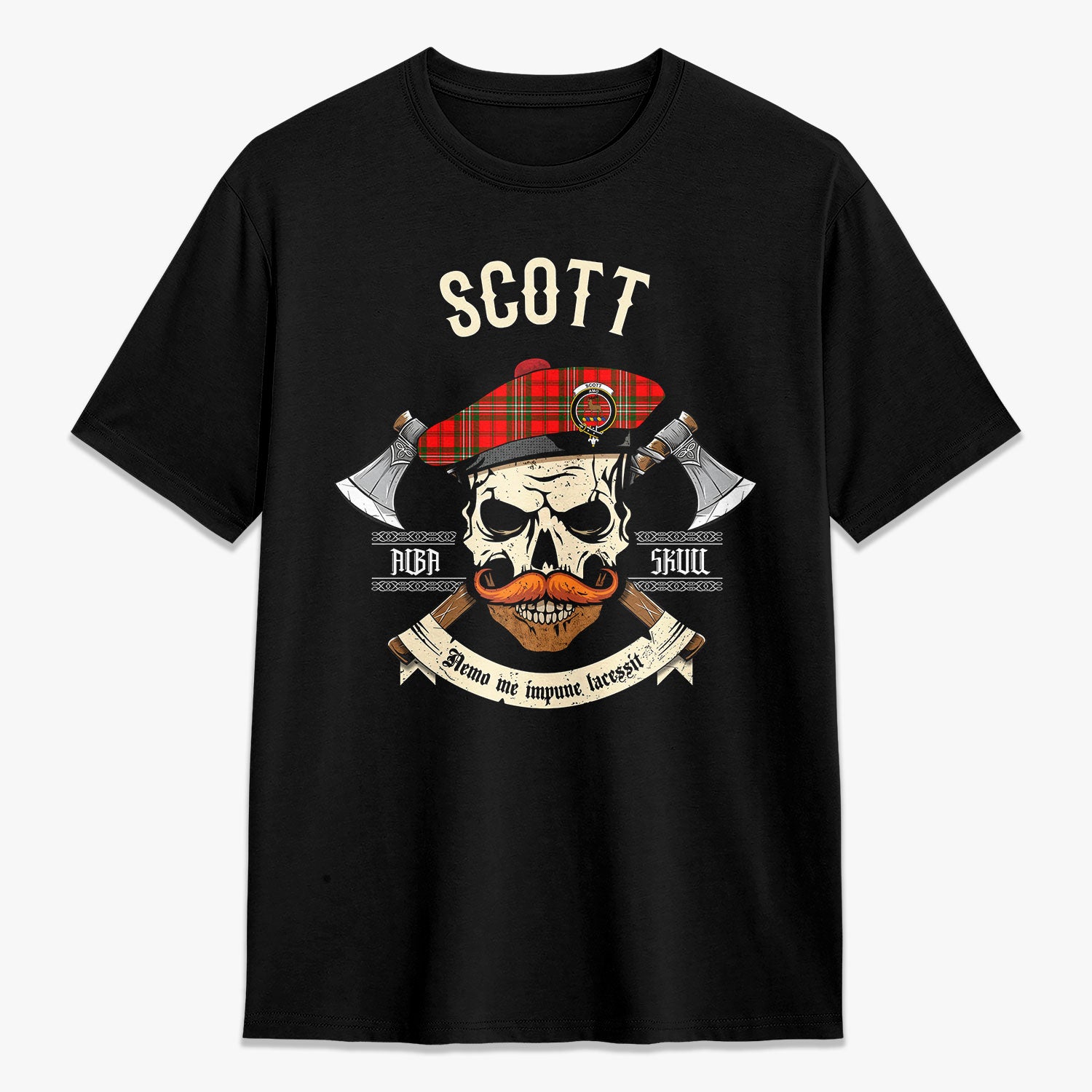 Scott Modern Tartan Crest 2D T-shirt - Alba Skull Style