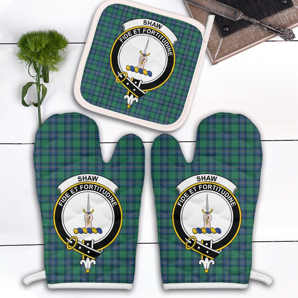 Shaw Ancient Tartan Crest Oven Mitt And Pot Holder (2 Oven Mitts + 1 Pot Holder)