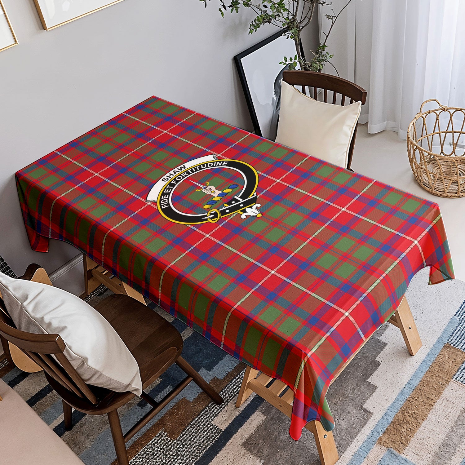 Shaw Red Modern Tartan Crest Tablecloth