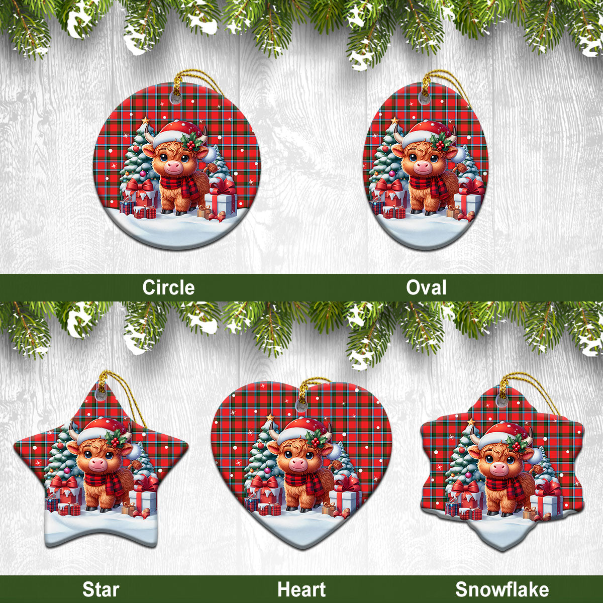 Sinclair Modern Tartan Christmas Ceramic Ornament - Highland Cow Winter Style