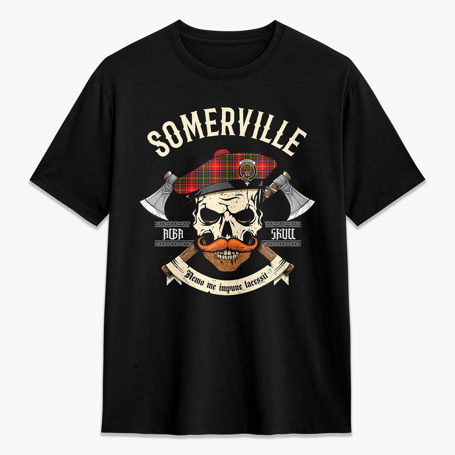 Somerville Tartan Crest 2D T-shirt - Alba Skull Style,