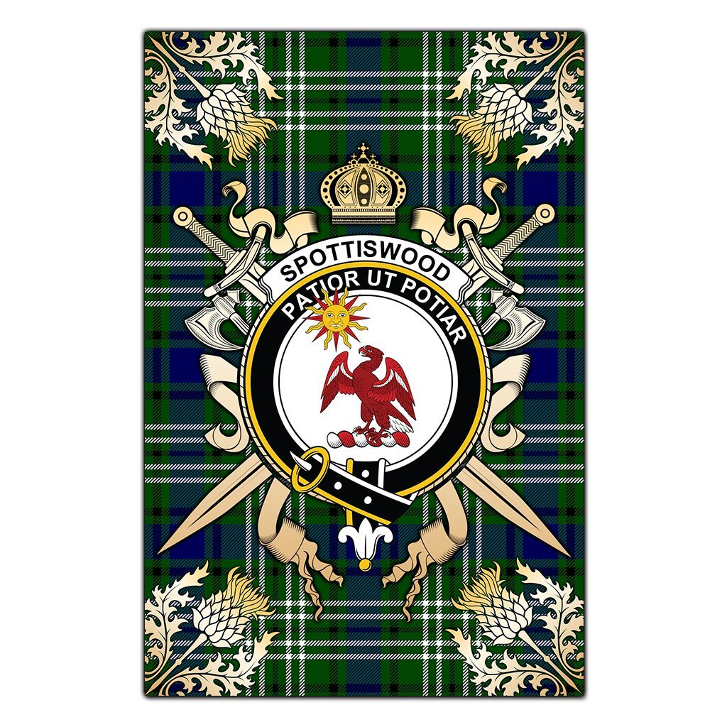 Spottiswood Tartan Crest Black Garden Flag - Gold Thistle Style