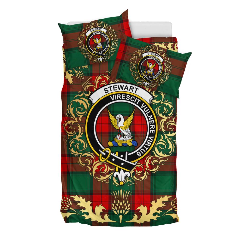 Stewart Atholl Modern Tartan Crest Bedding Set - Golden Thistle Style