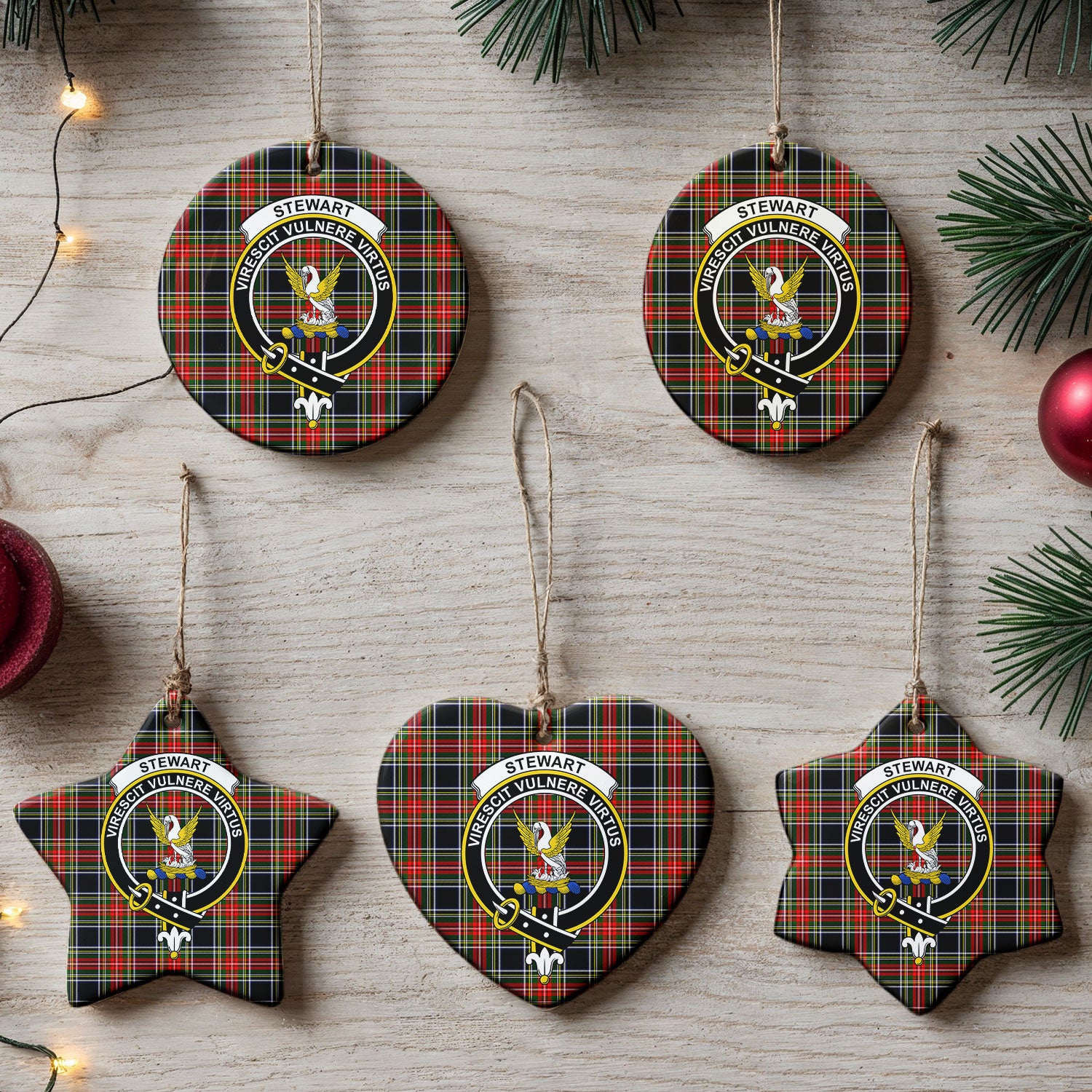 Stewart Black Tartan Crest Christmas Ceramic Ornament