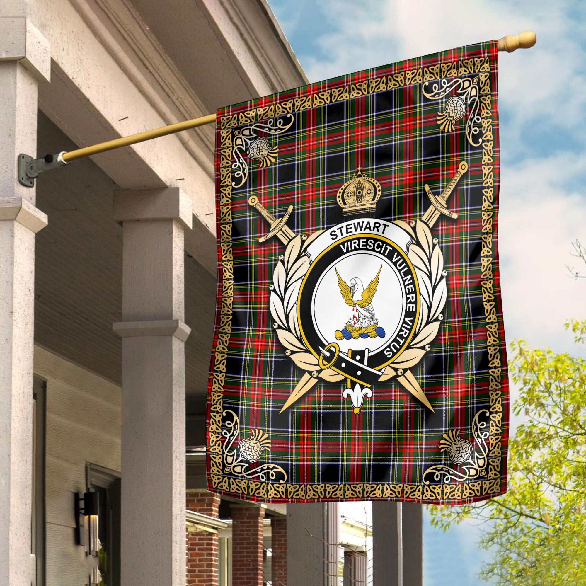 Stewart Black Tartan Crest Garden Flag - Celtic Thistle Style