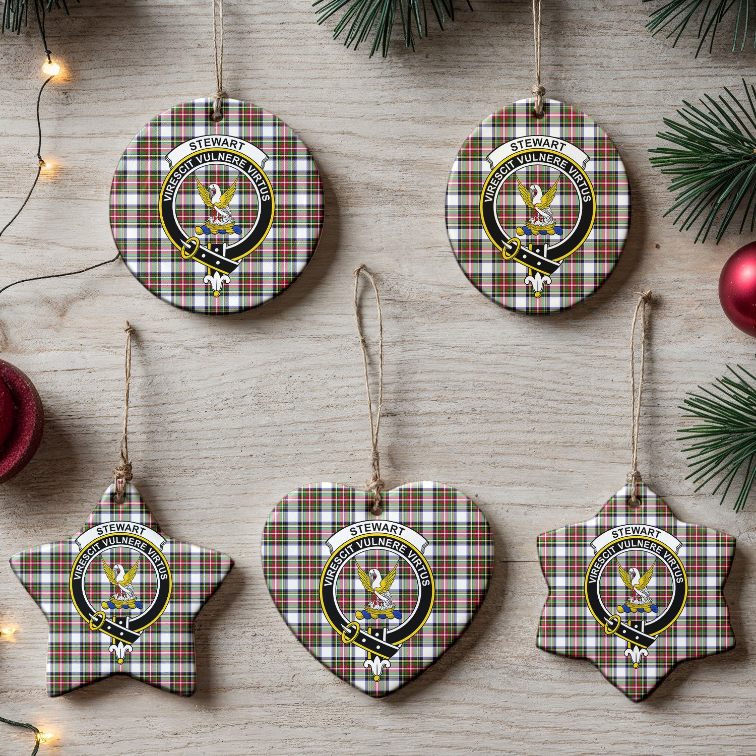 Stewart Dress Modern Tartan Crest Christmas Ceramic Ornament