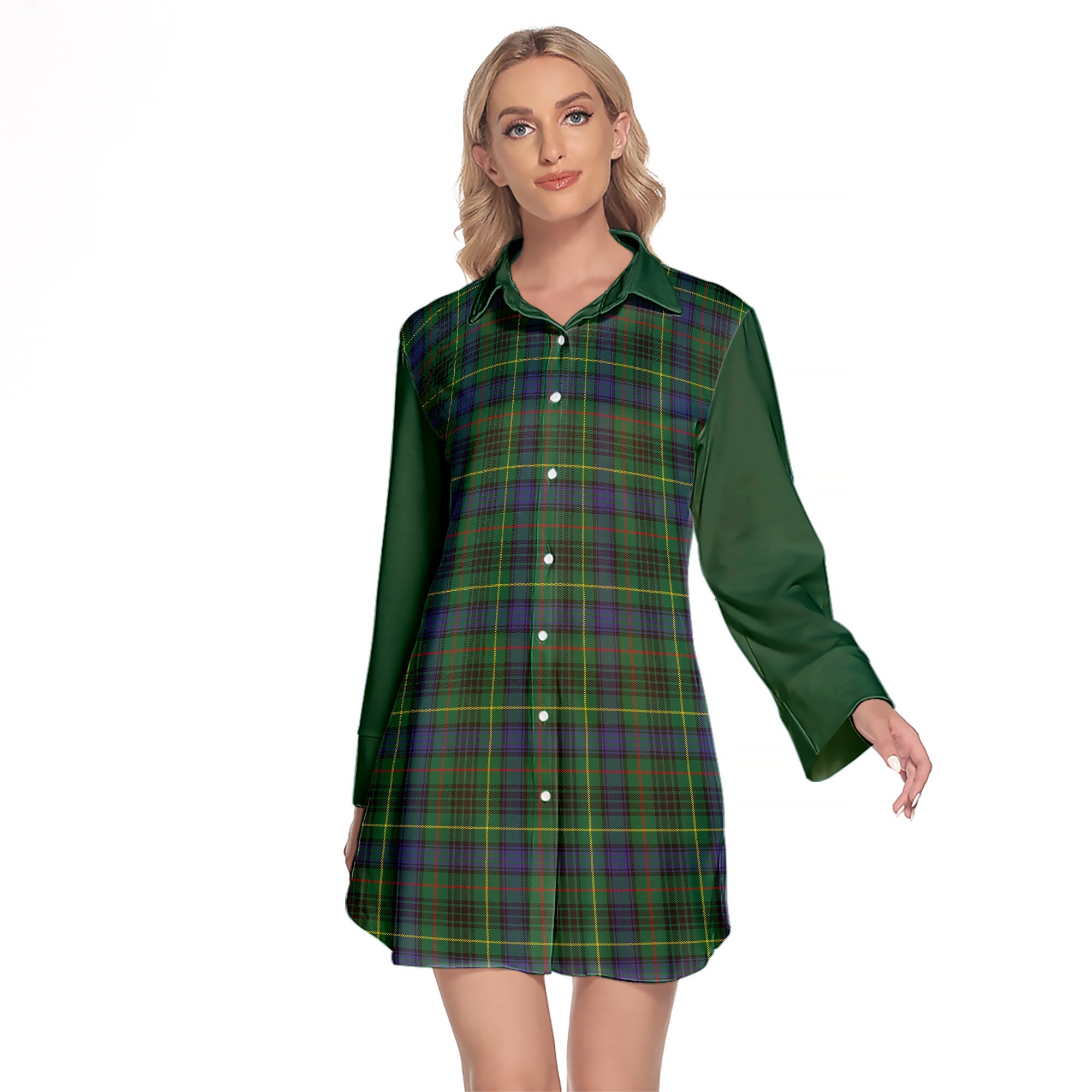 Stewart Hunting Modern Tartan Women's Lapel Shirt Dress With Long Sleeve