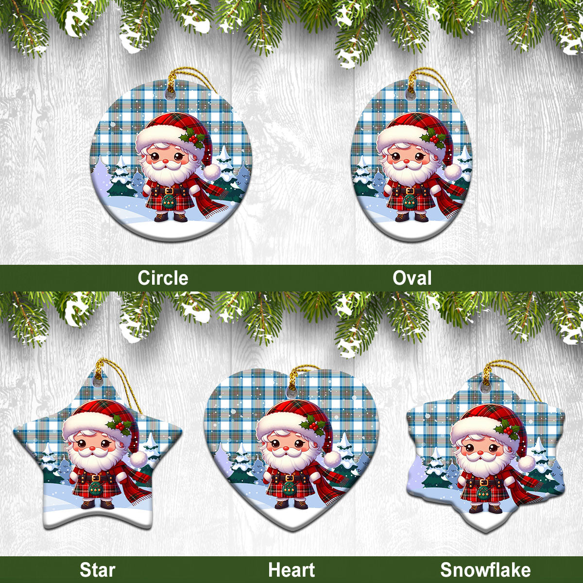 Stewart Muted Blue Tartan Christmas Ceramic Ornament - Santa Claus In Kilt Style