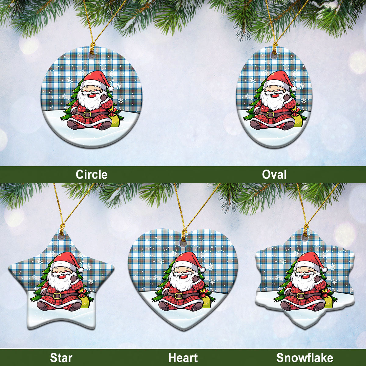 Stewart Muted Blue Tartan Christmas Ceramic Ornament - Scottish Santa Style