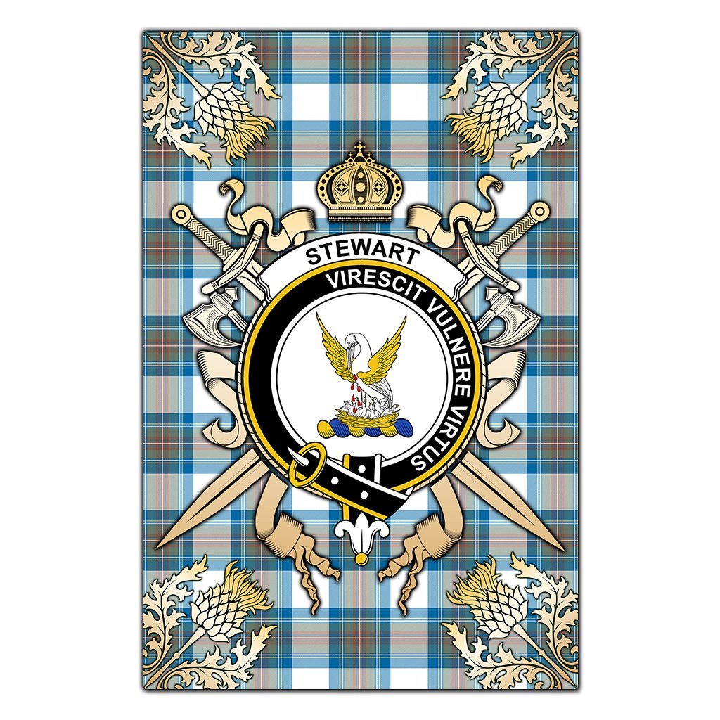 Stewart Muted Blue Tartan Crest Black Garden Flag - Gold Thistle Style