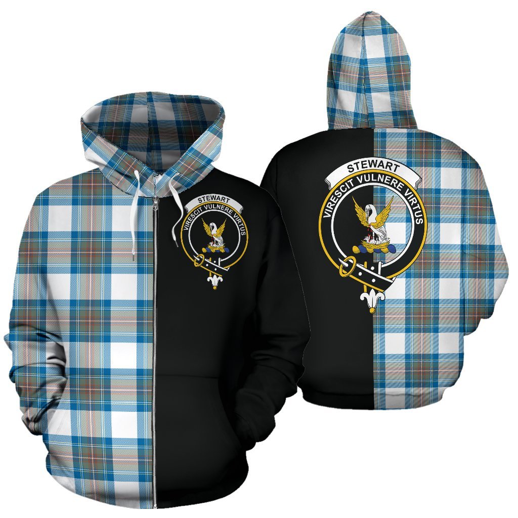Stewart Muted Blue Tartan Crest Zipper Hoodie - Half Of Me Style