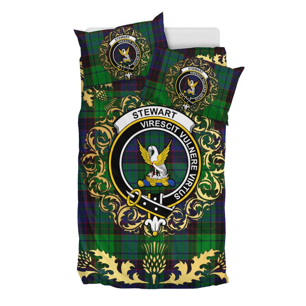 Stewart Old Modern Tartan Crest Bedding Set - Golden Thistle Style