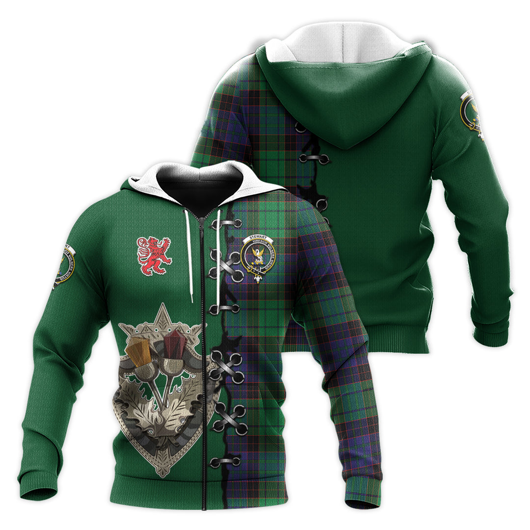 Stewart Old Modern Tartan Hoodie - Lion Rampant And Celtic Thistle Style