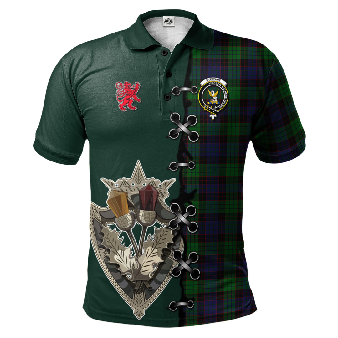 Stewart Old Tartan Polo Shirt - Lion Rampant And Celtic Thistle Style