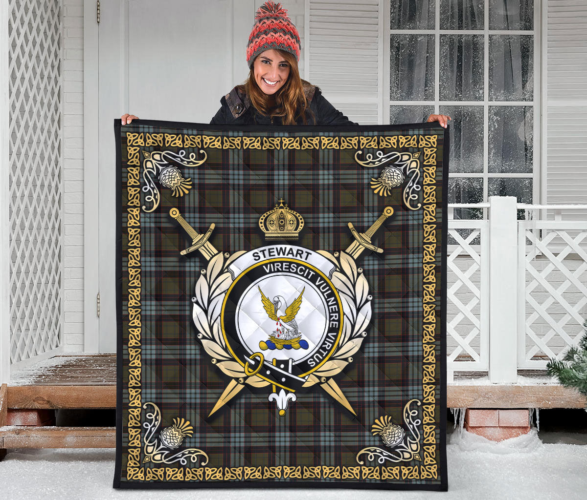 Stewart Old Weathered Tartan Crest Premium Quilt - Celtic Thistle Style