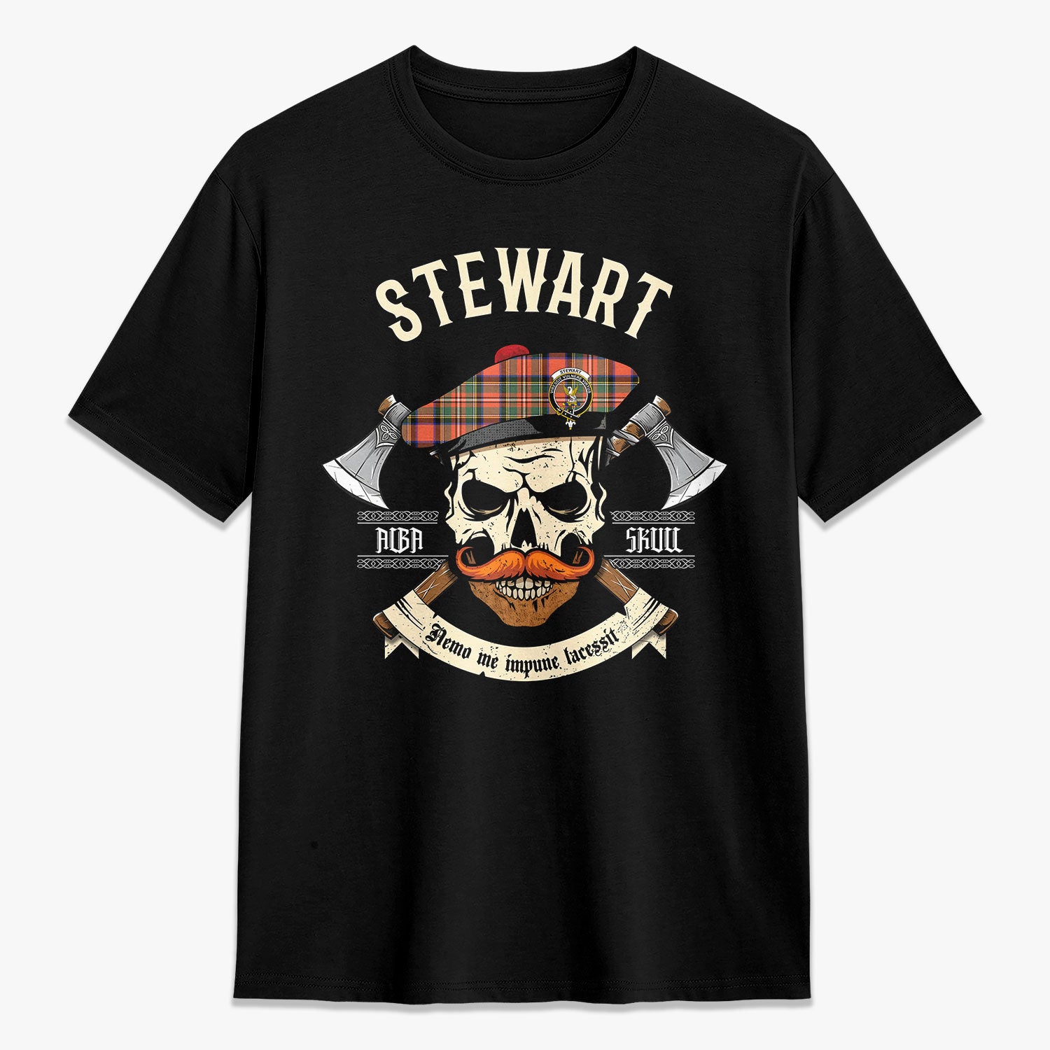 Stewart Royal Ancient Tartan Crest 2D T-shirt - Alba Skull Style,