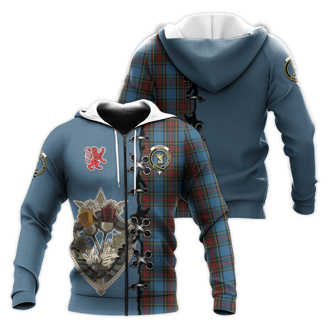 Stewart Royal Blue Tartan Hoodie - Lion Rampant And Celtic Thistle Style