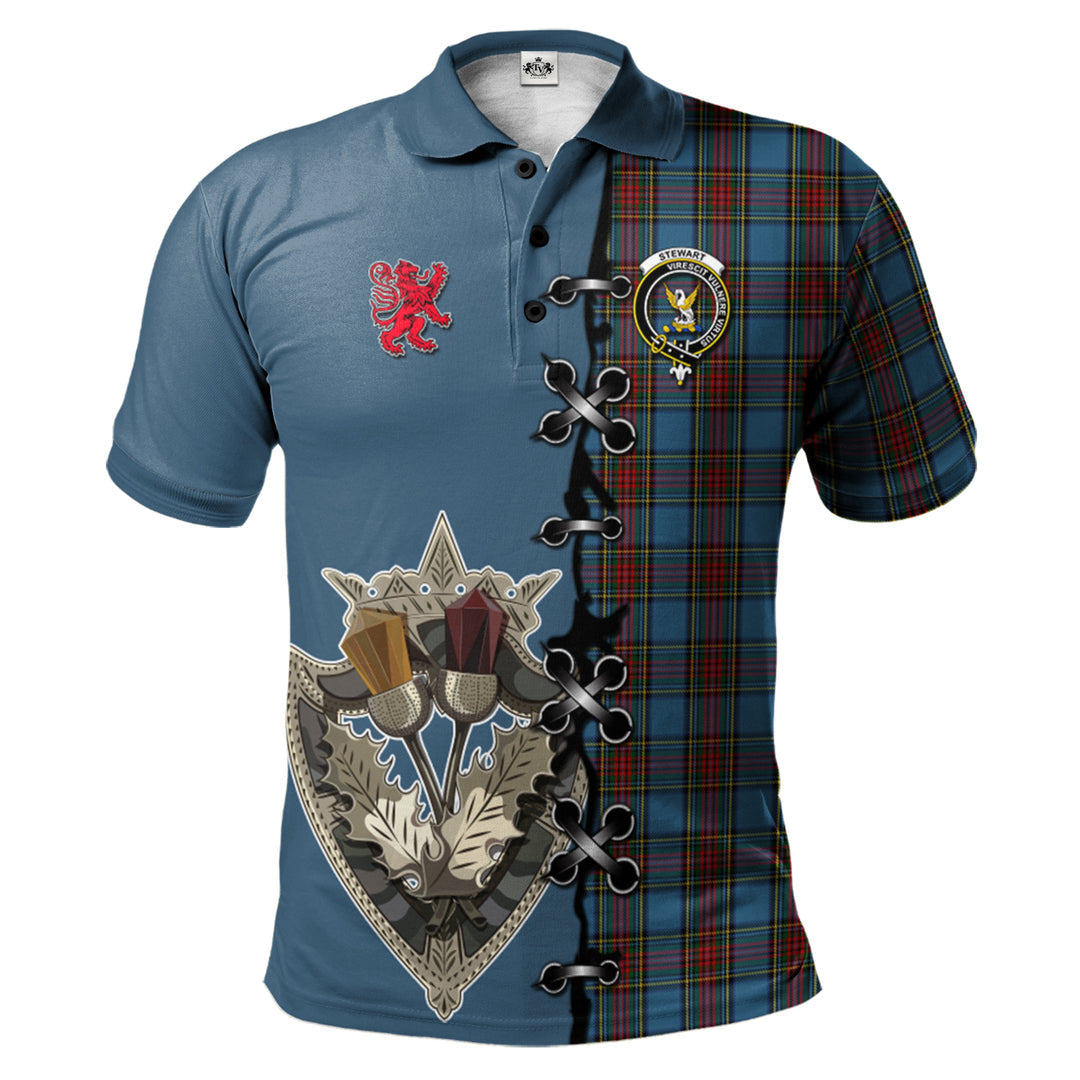 Stewart Royal Blue Tartan Polo Shirt - Lion Rampant And Celtic Thistle Style