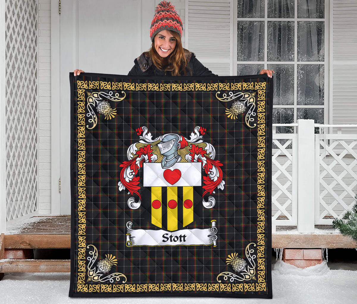 Stott Tartan Crest Premium Quilt - Celtic Thistle Style