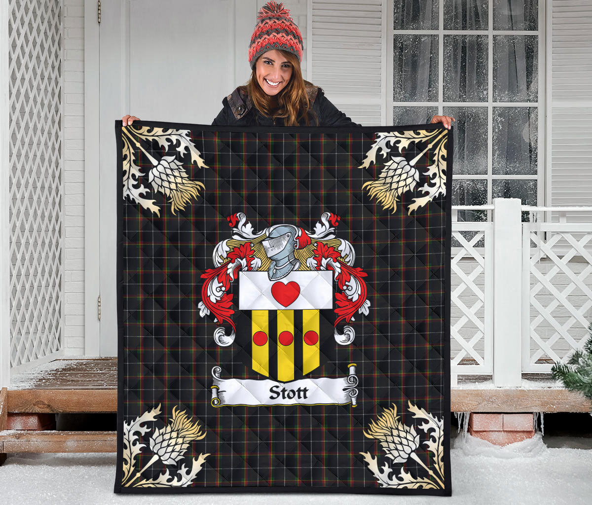 Stott Tartan Crest Premium Quilt - Gold Thistle Style