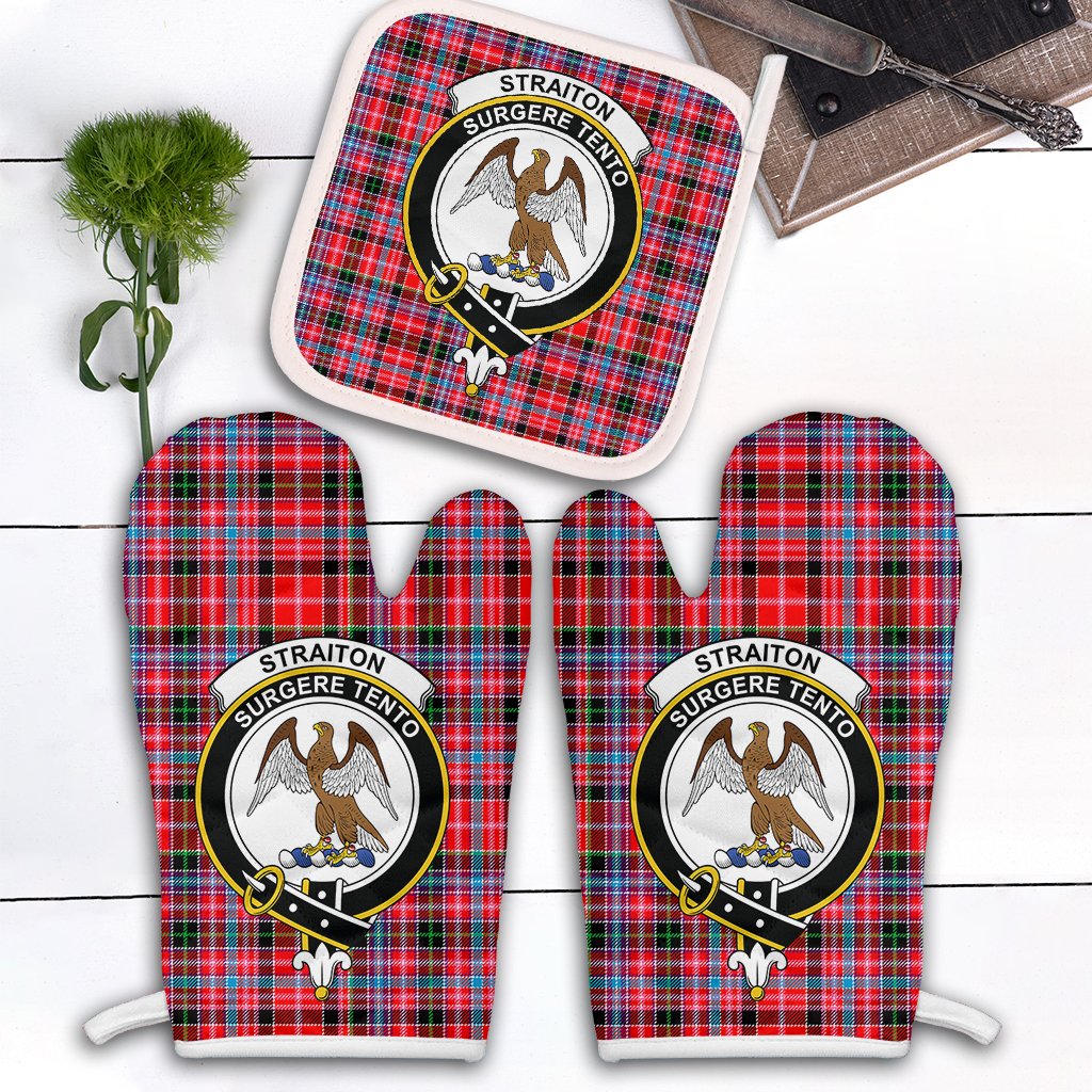 Straiton Tartan Crest Oven Mitt And Pot Holder (2 Oven Mitts + 1 Pot Holder)