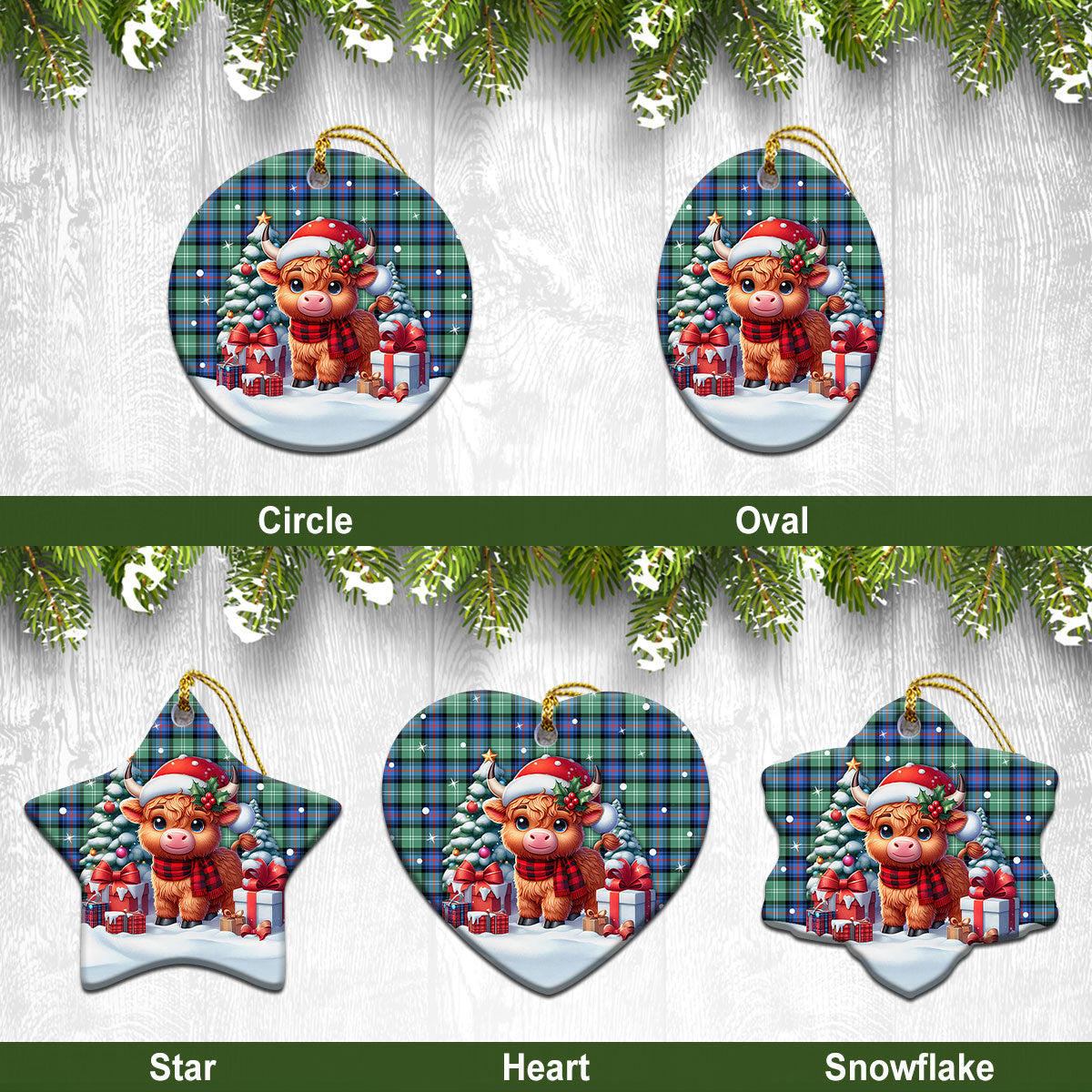 Sutherland Old Ancient Tartan Christmas Ceramic Ornament - Highland Cow Winter Style