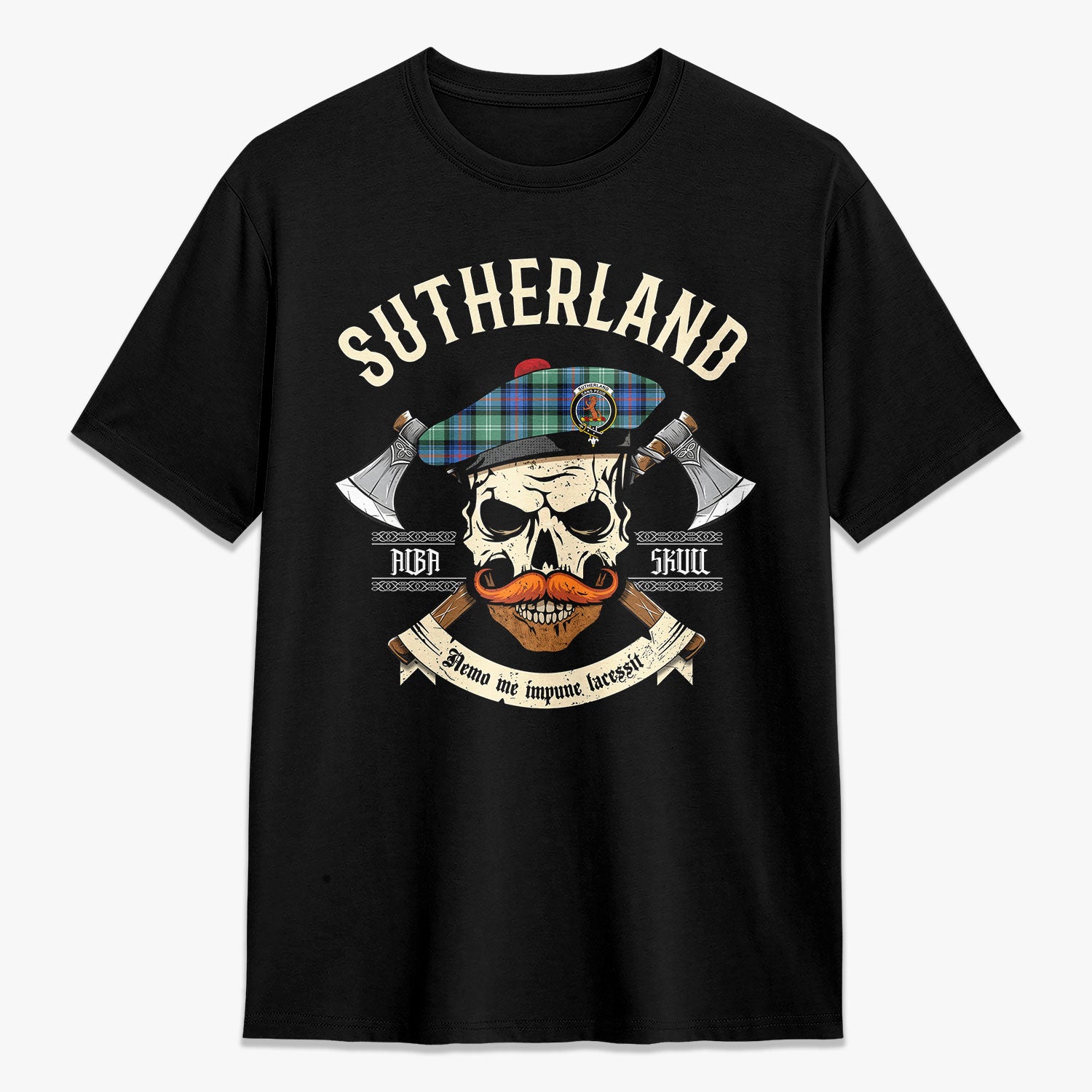 Sutherland Old Ancient Tartan Crest 2D T-shirt - Alba Skull Style,