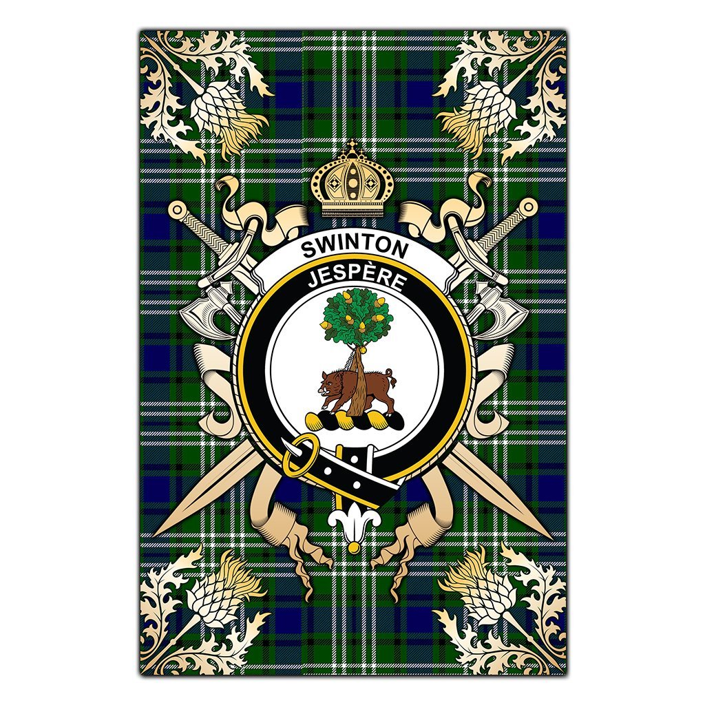 Swinton Tartan Crest Black Garden Flag - Gold Thistle Style