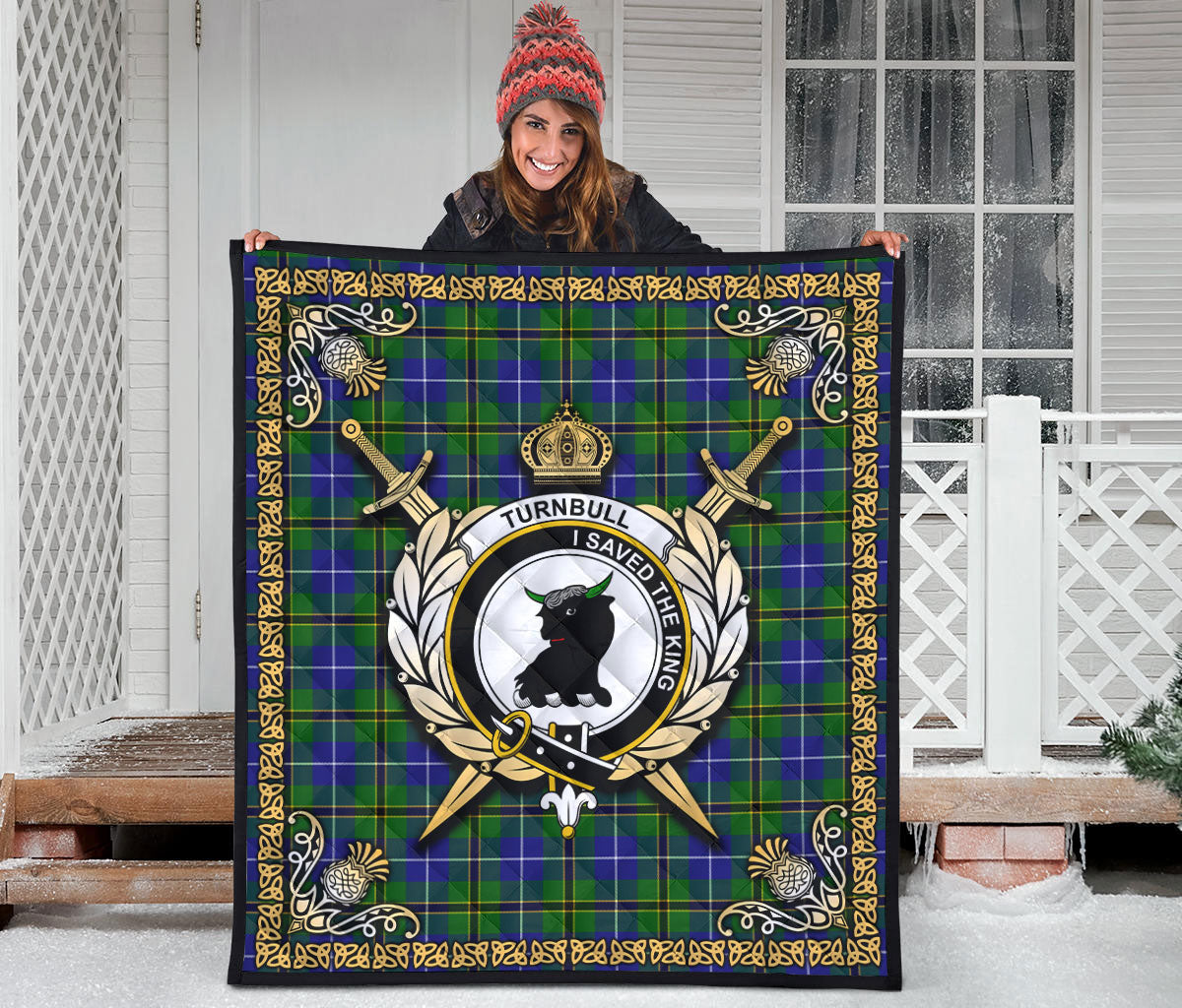 Turnbull Hunting Tartan Crest Premium Quilt - Celtic Thistle Style