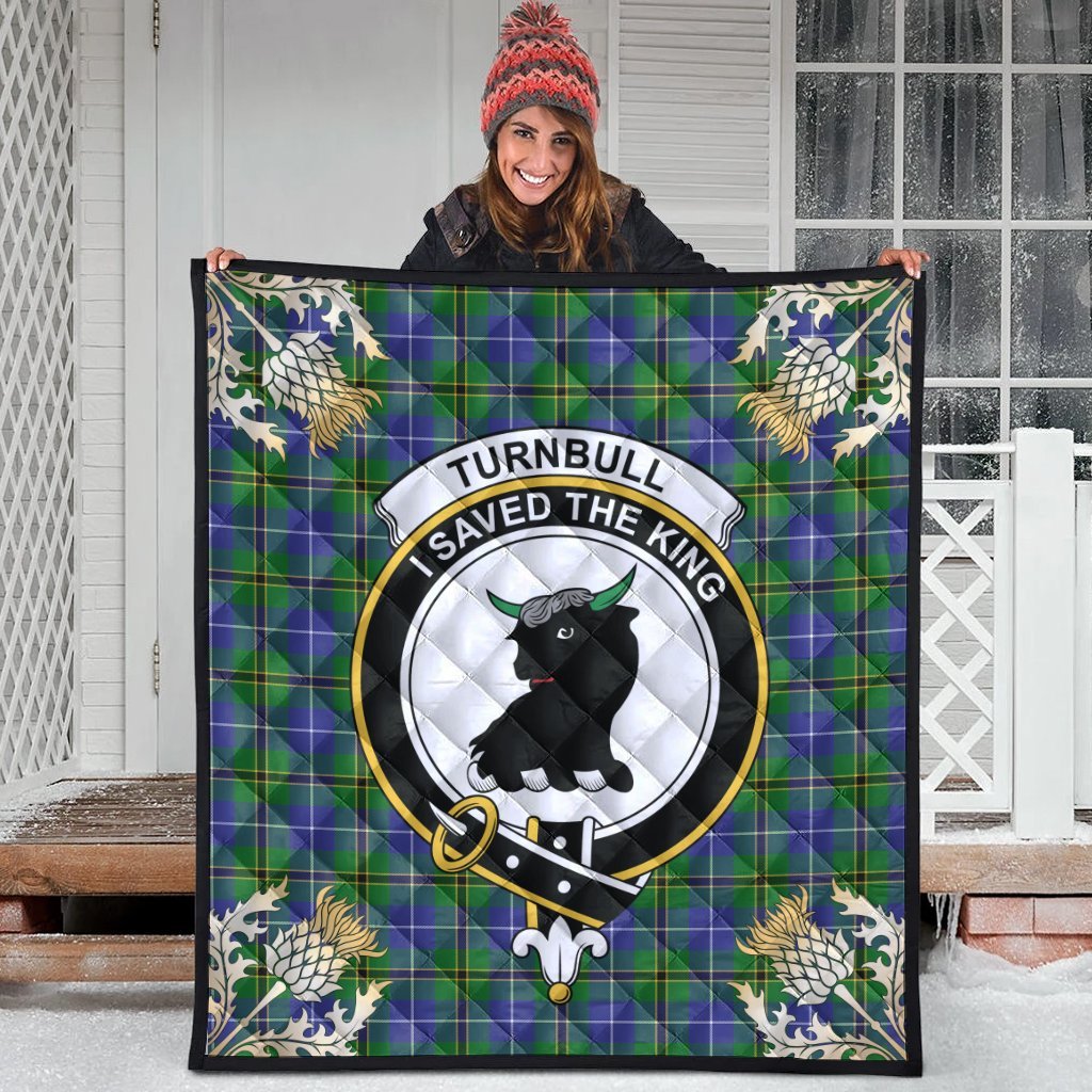 Turnbull Hunting Tartan Crest Premium Quilt - Gold Thistle Style