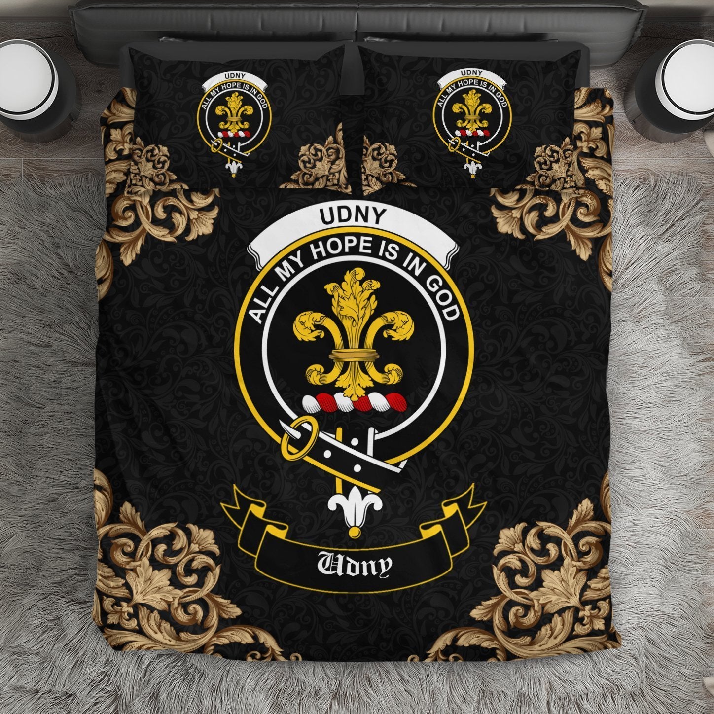 Udny Crest Black Bedding Set