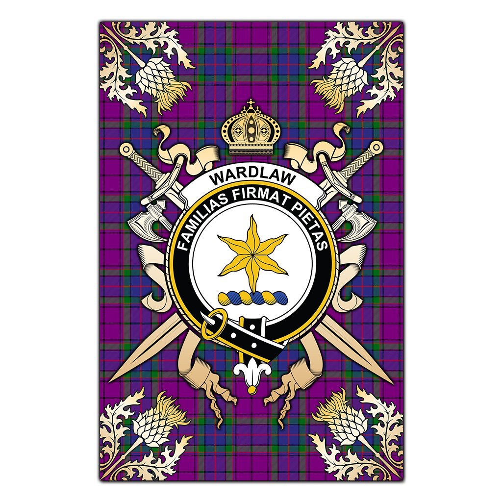 Wardlaw Modern Tartan Crest Black Garden Flag - Gold Thistle Style