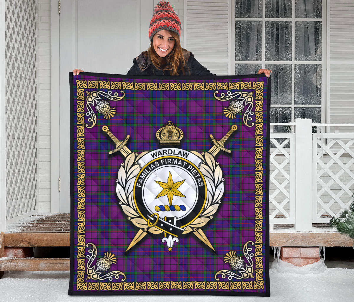 Wardlaw Modern Tartan Crest Premium Quilt - Celtic Thistle Style