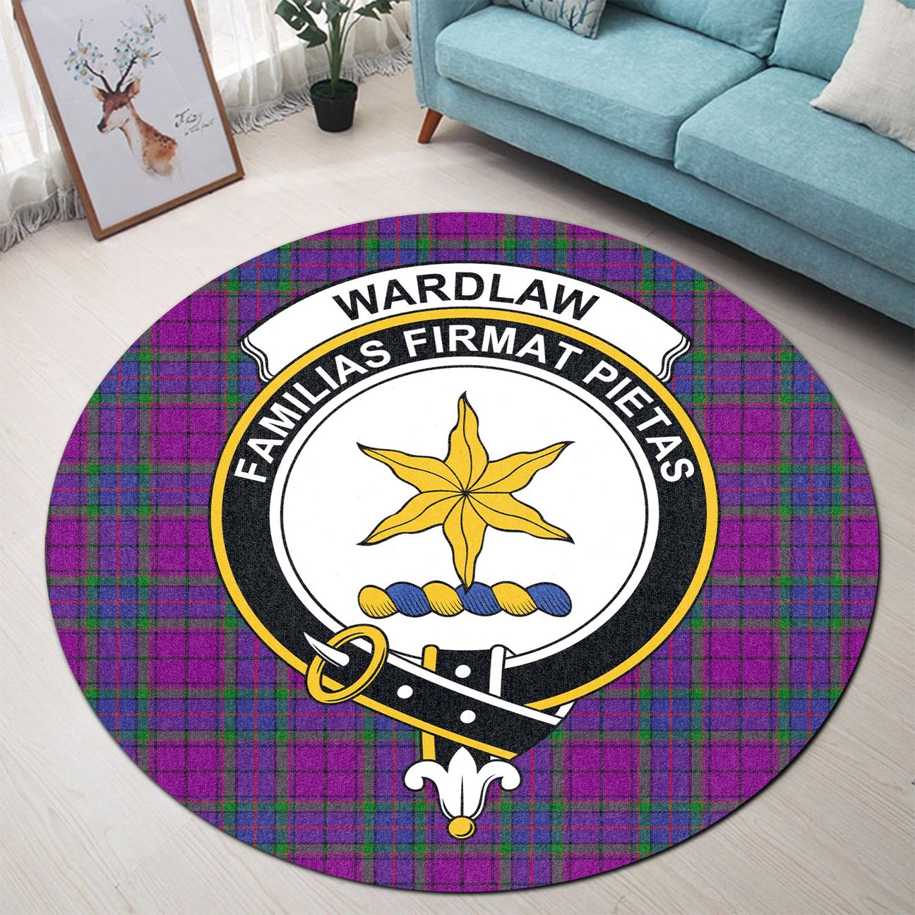 Wardlaw Modern Tartan Crest Round Rug