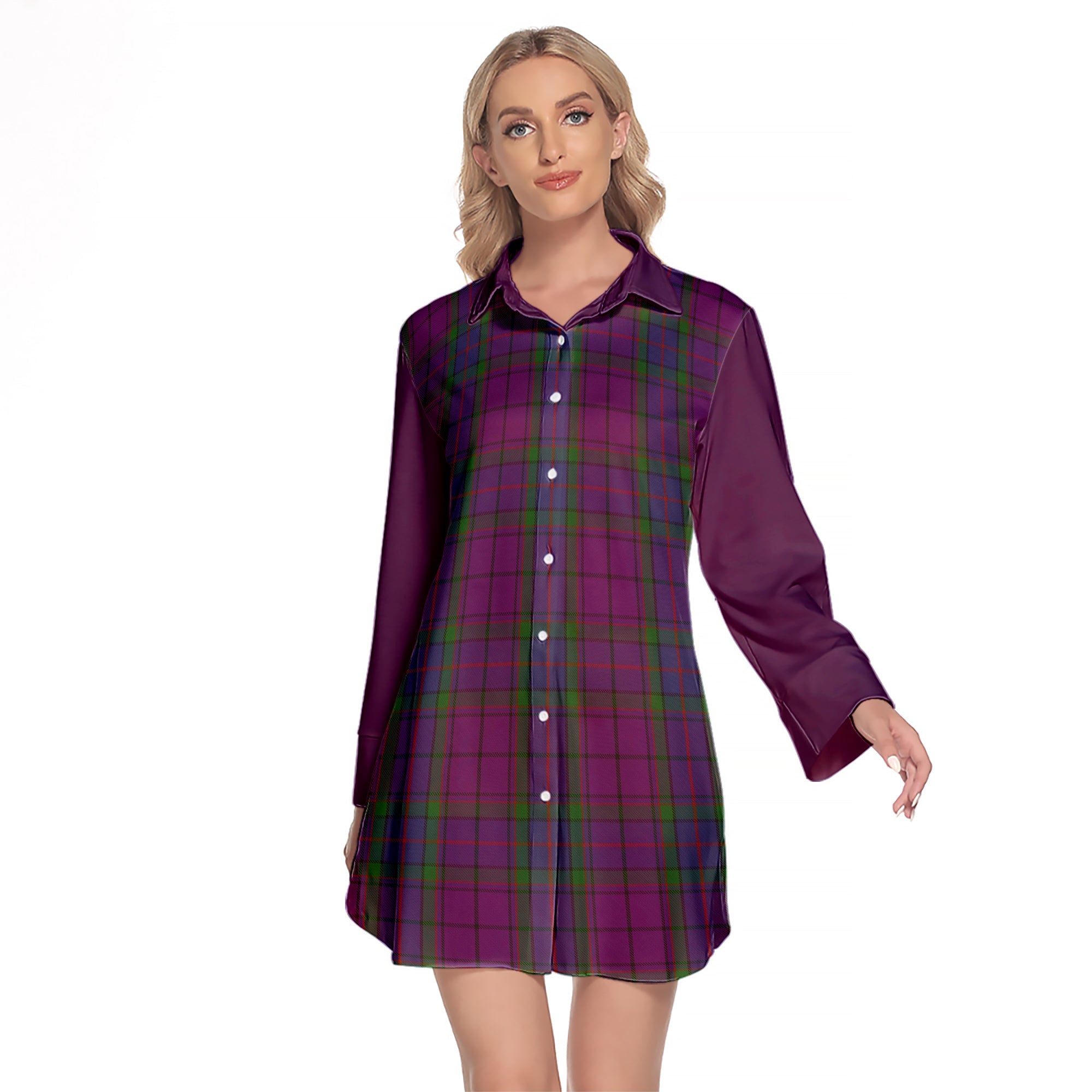 Wardlaw Tartan Women's Lapel Shirt Dress With Long Sleeve