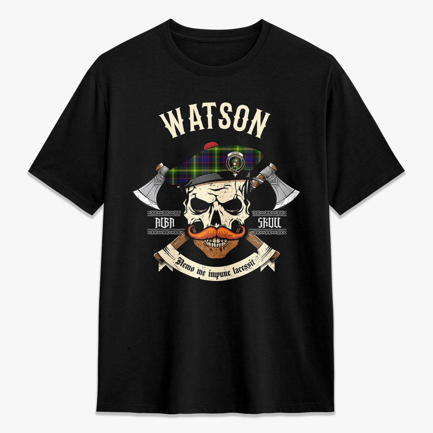 Watson Modern Tartan Crest 2D T-shirt - Alba Skull Style