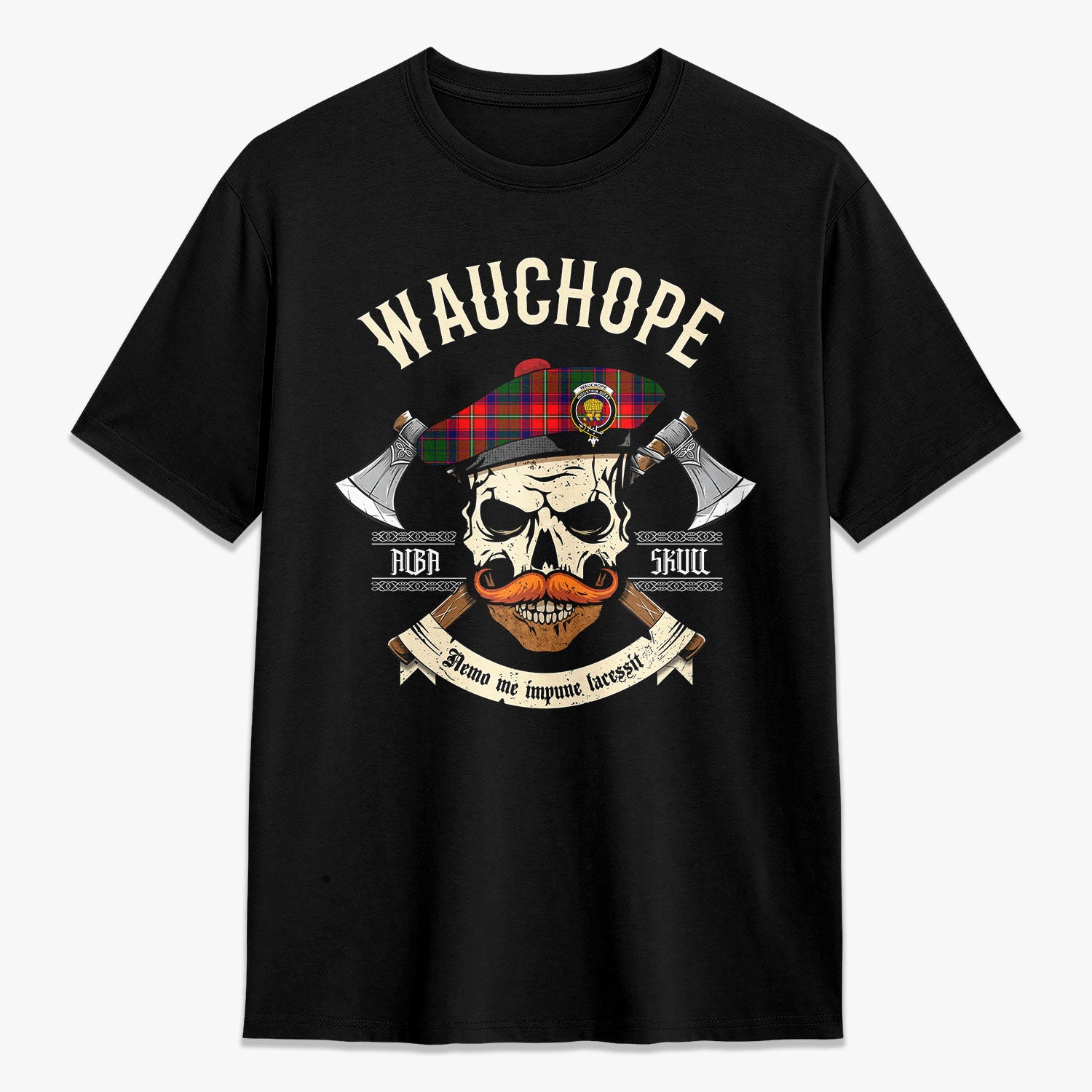 Wauchope (or Waugh) Tartan Crest 2D T-shirt - Alba Skull Style,