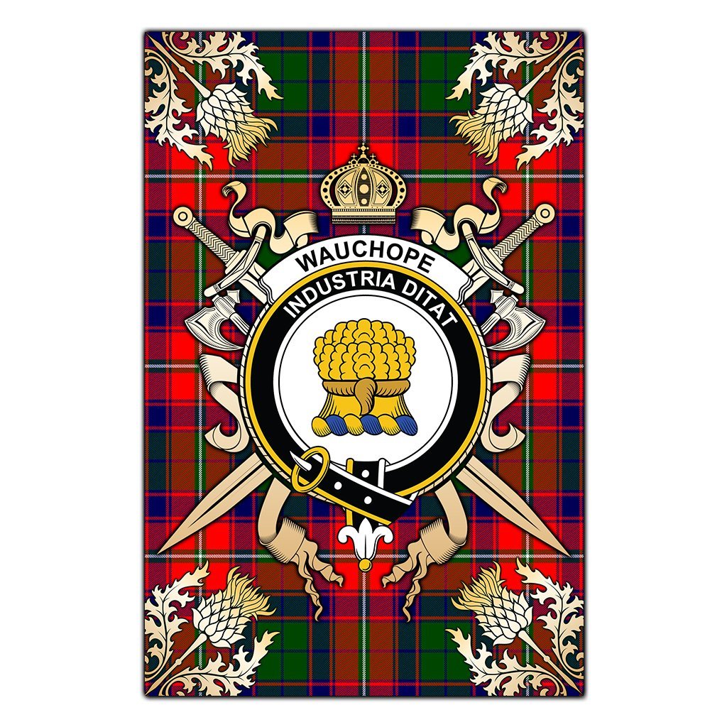 Wauchope Tartan Crest Black Garden Flag - Gold Thistle Style