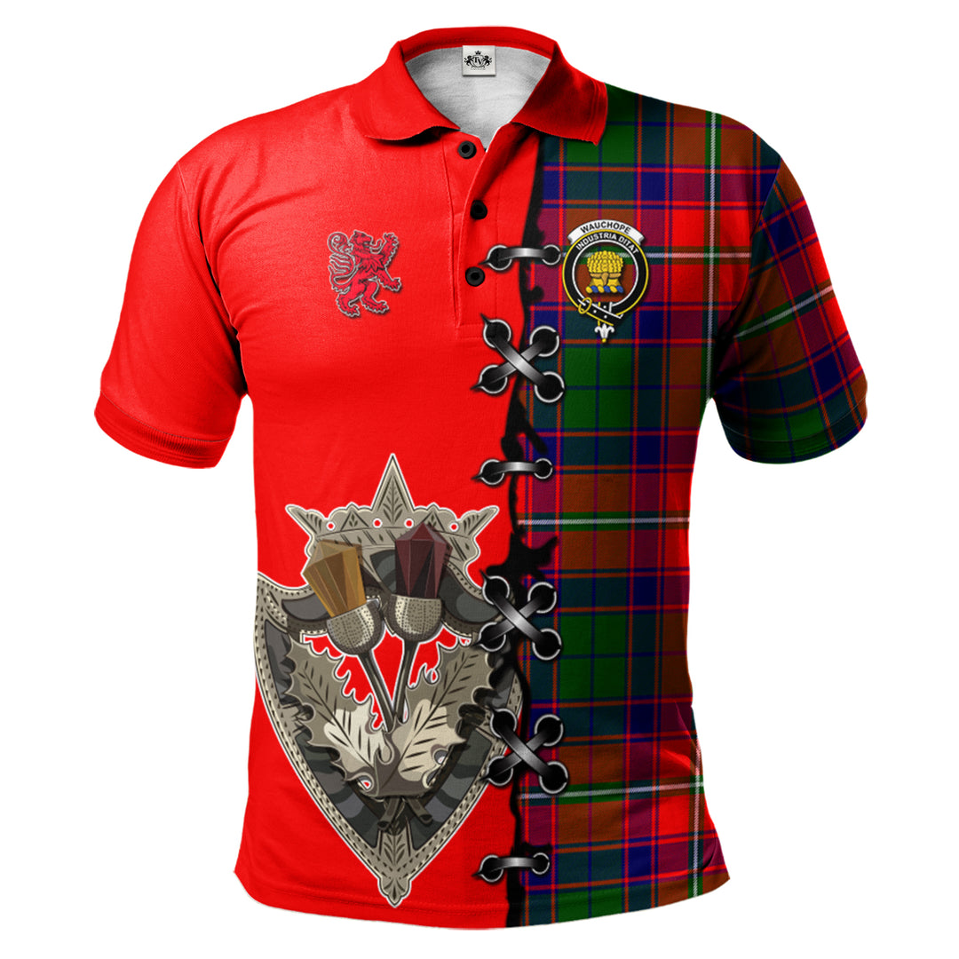 Wauchope Tartan Polo Shirt - Lion Rampant And Celtic Thistle Style