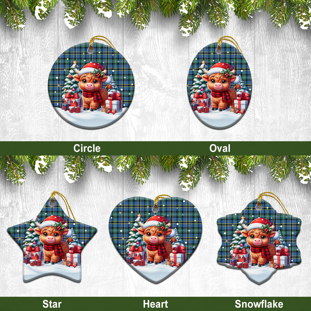 Weir Ancient Tartan Christmas Ceramic Ornament - Highland Cow Winter Style