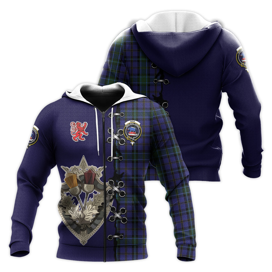 Weir Tartan Hoodie - Lion Rampant And Celtic Thistle Style