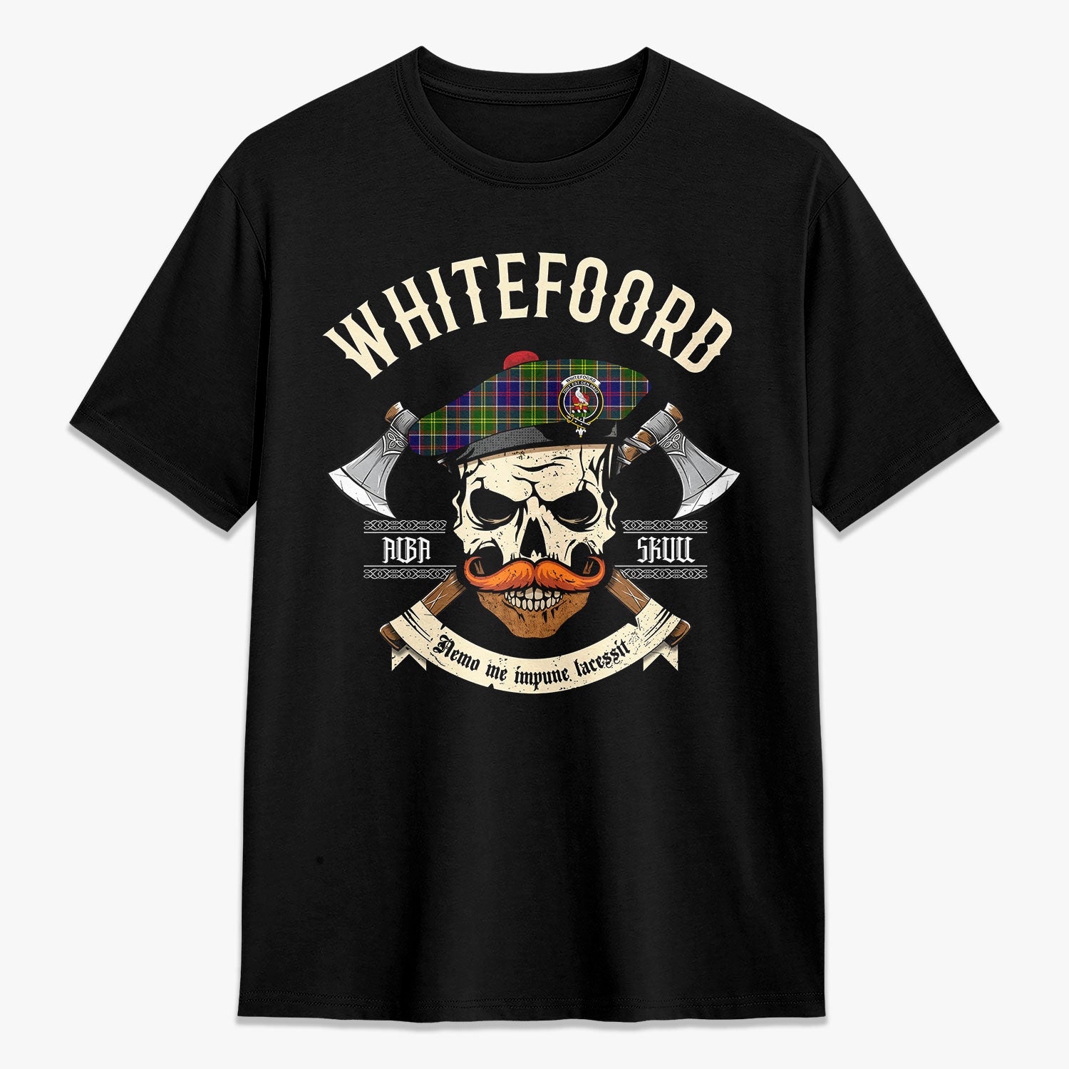 Whitefoord Tartan Crest 2D T-shirt - Alba Skull Style,
