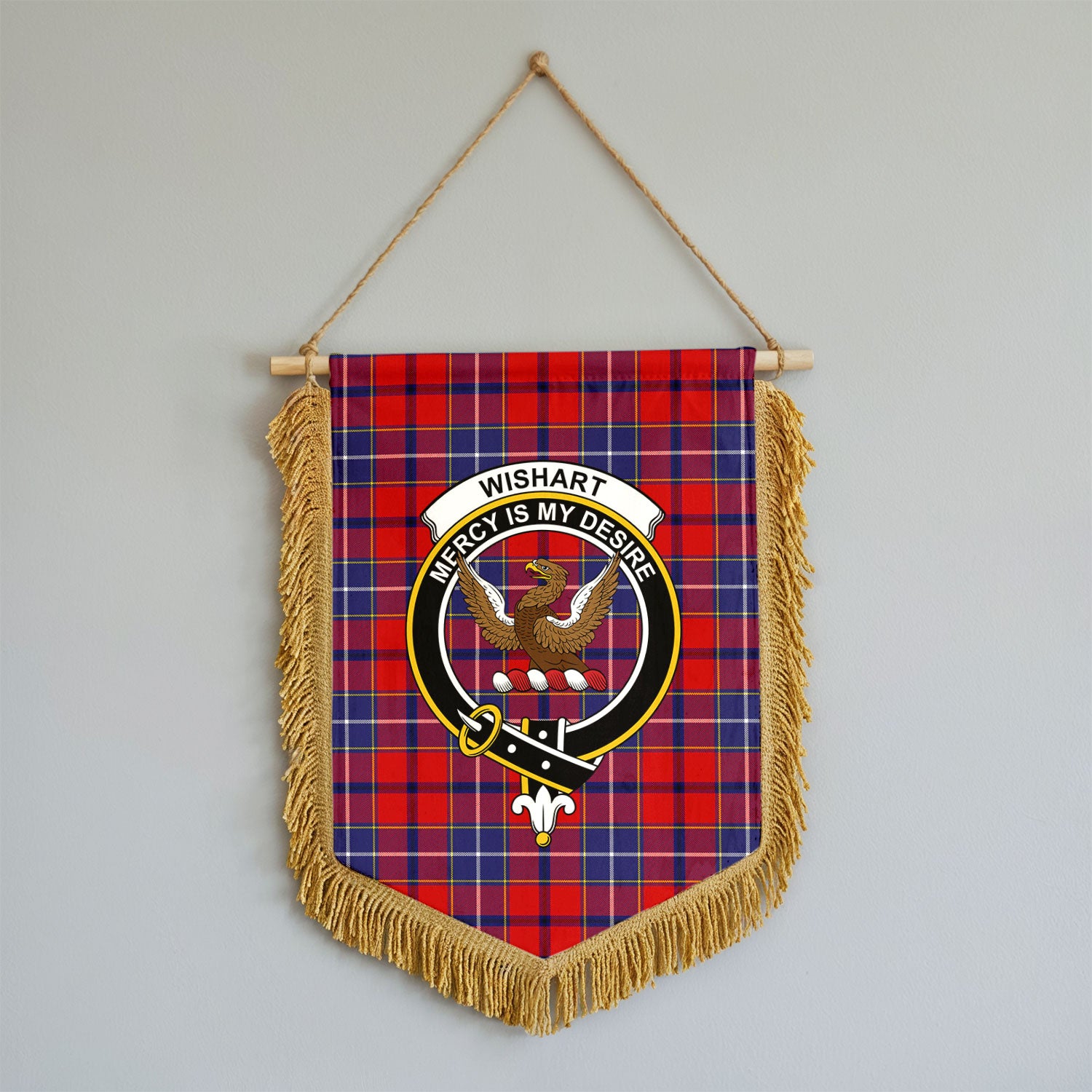 Wishart Dress Tartan Crest Wall Hanging Banner - Wood Pole